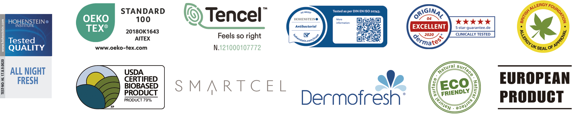 Los productos BSensible han sido los primeros en recibir la certificación “ALL NIGHT FRESH” por el prestigioso Instituto Hohenstein. Esta certificación demuestra que los productos Hospitality by BSensible duran más tiempo sin bacterias y proporcionan una frescura y comodidad de larga duración.